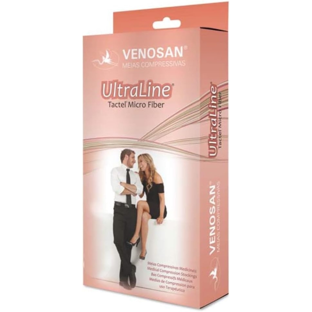 A Meia de Compressão Ultraline 4000 Venosan é meia compressiva Super Premium, em fios e malhas com efeito climático, feita com mais alto padrão de qualidade Suíço. Produzida em microfibras tactel e micro emulsão de silicone (nanotecnologia), oferecendo uma agradável sensação climática.Garante maior elasticidade e maciez no seu dia a dia. As meias da linha Ultraline 4000 são mais confortáveis, sedosas, duráveis e fáceis de calçar.IndicaçãoVarizes com tendência a edema;Insuficiência venosa crônica;Pós-escleroterapia;Operação de varizes.