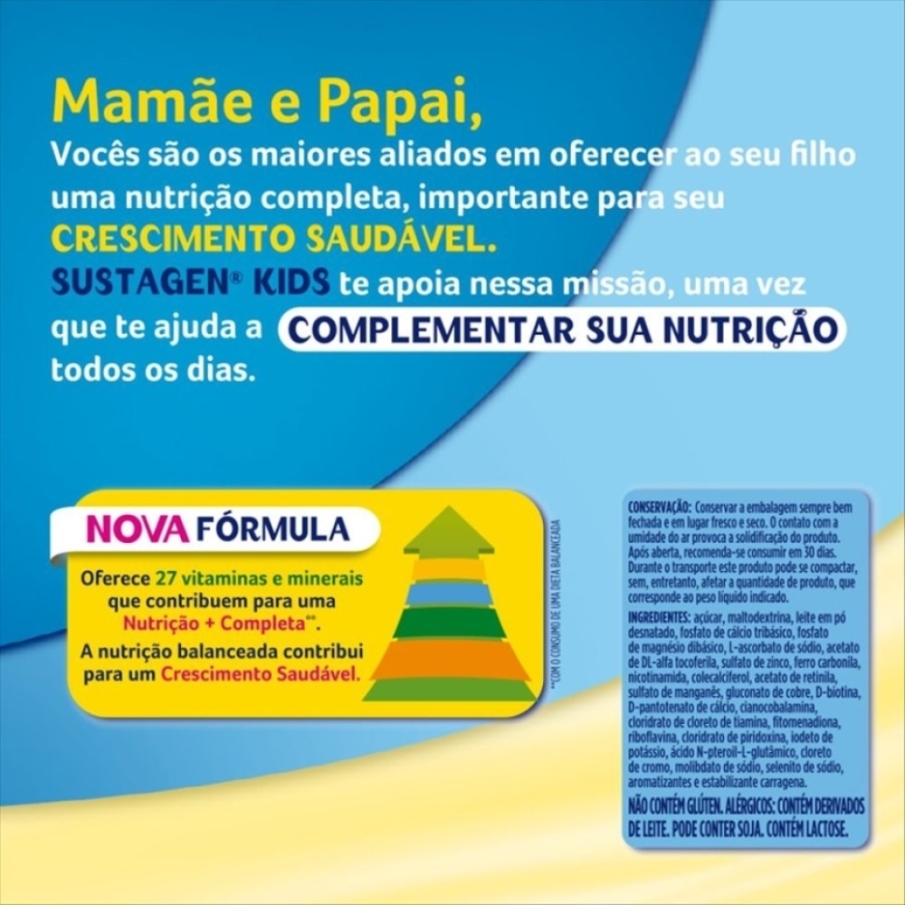 Complemento alimentar infantil Sustagen Kids morango, lata, 1 unidade com 380g