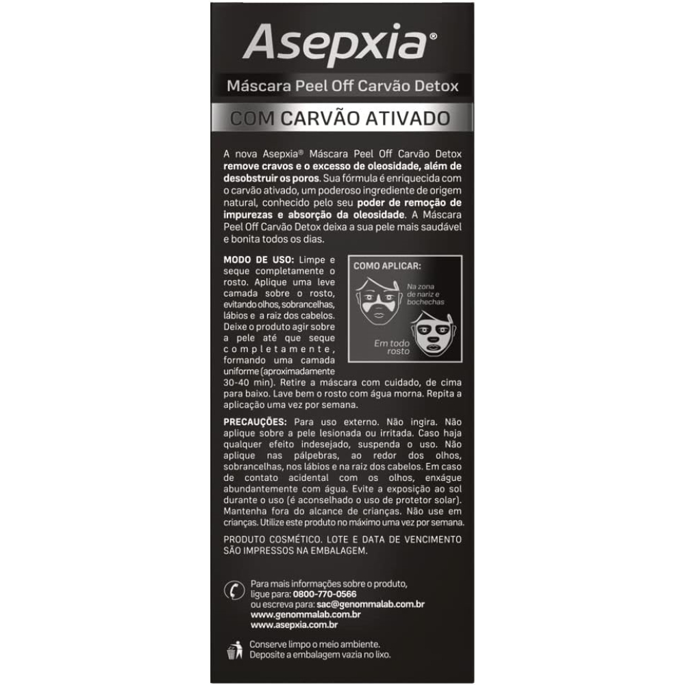 Mascara Purificante Facial asepxia carvao Detox 30g