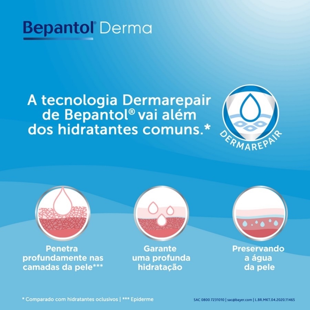 • Aplique uma fina camada de Bepantol Derma Creme sobre a pele e espalhe delicadamente.