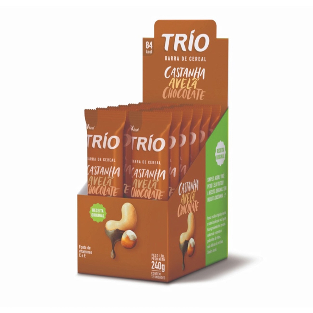 Barra de cereal Trio chocolate, avela e castanha, 1 unidade com 25g