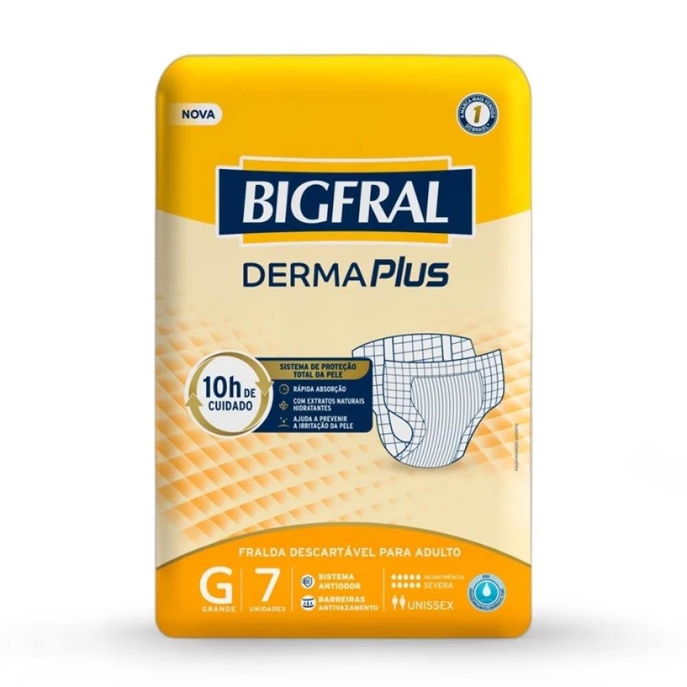 Fralda Geriatrica Bigfral Derma Plus G, pacote com 7 unidades