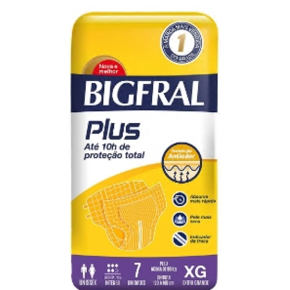 Fralda Geriatrica Bigfral Plus XG, pacote com 7 unidades