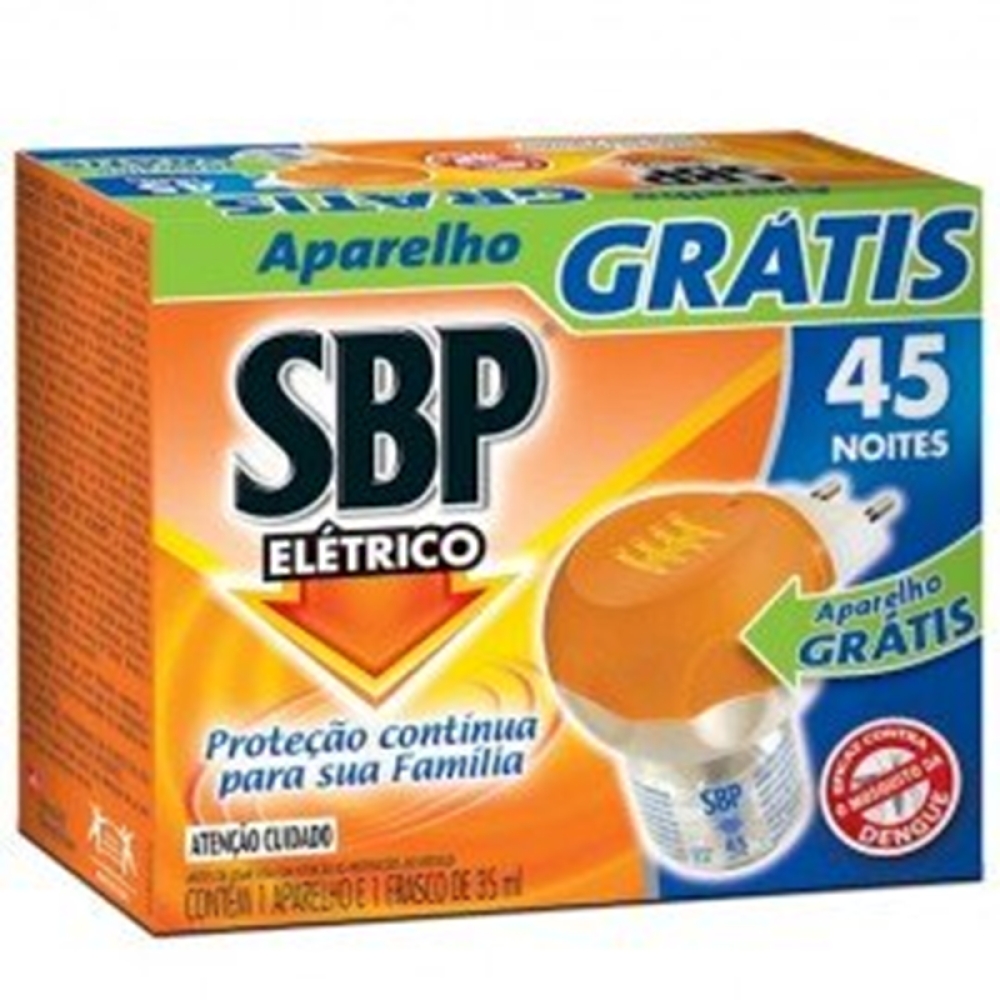 Repelente eletrico SBP 45 noites, aparelho + refil, 1 unidade com 35mL