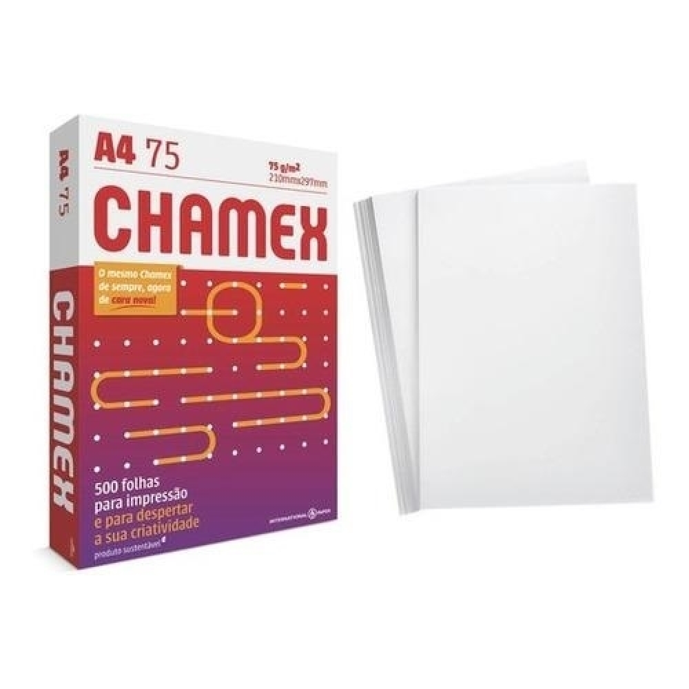 Papel Sulfite chamex a4 75 - branco, pacote com 500 folhas.