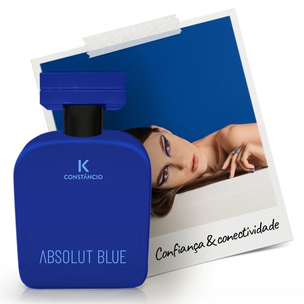 Absolut Blue K Constâncio é um perfume Oriental Floral que traz confiança e autenticidade para uma mulher que transita entre o clássico e o moderno em uma conexão absoluta, assim como o encontro do azul do céu e do mar em uma noite iluminada apenas pelas estrelas. Na saída uma combinação exótica de notas de Cassis com notas frescas de Pomelo e Bergamota. No corpo a harmonia perfeita das Blueberries com as flores brancas opulentas de Tuberosa e Jasmim. No fundo um intenso e elegante acorde de Madeiras Nobres, Vanilla e Musk reforçam a força e a segurança dessa mulher.
