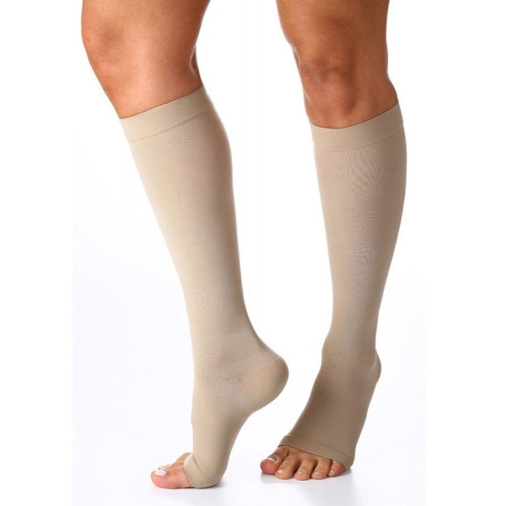 - Meia Panturrilha (3/4). - Tamanho: Média Normal. - Cor: Natural Escuro. - Ponteira aberta. - Maior conforto e maciez. - Calcanhar reforçado. - Alta dissipação de calor.