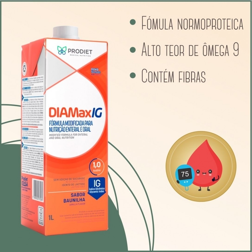 Fórmula nutricionalmente completa, desenvolvida especialmente para o controle da glicemia. Com baixo índice glicêmico, isento de sacarose e 28 vitaminas e minerais, DiamaxIG é ideal para a praticidade do dia a dia.