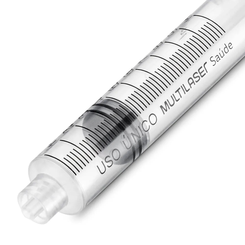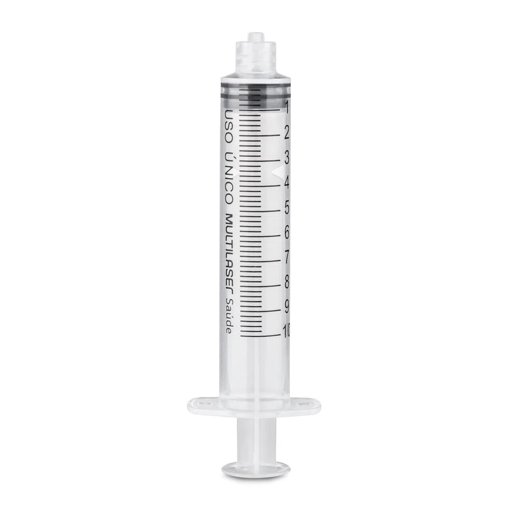 Seringa Luer Lock sem agulha Capacidade: 10,0ml Atóxica e apirogênica Cilindro transparente Com bico luer lock para maior segurança durante a manipulação da agulha Com bisel trifacetada e lubrificada que reduz a dor do paciente Isento de Latex Descartável e de uso único