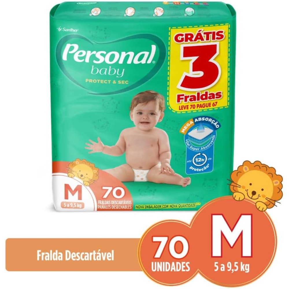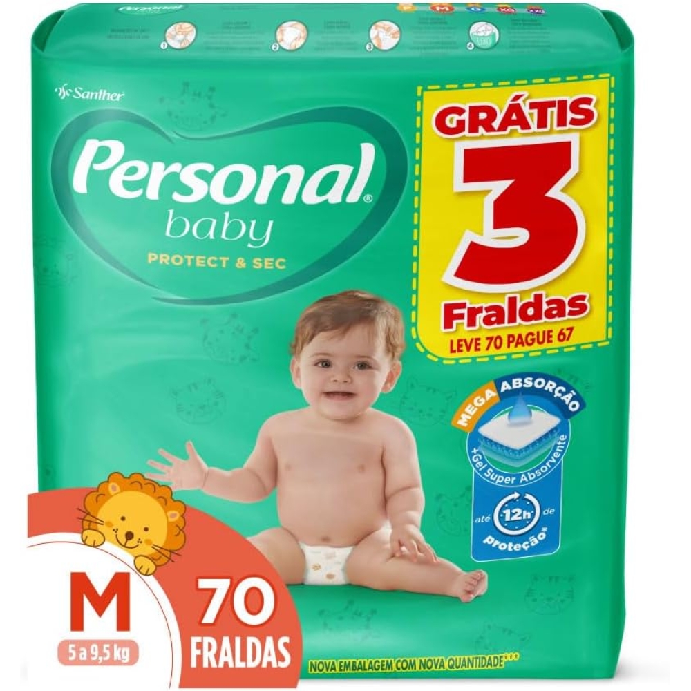 A Personal Protect&Sec é uma fralda desenvolvida para proporcionar mais conforto e proteção aos bebês. Seu sistema de mega absorção combinado com Gel Super Absorvente ajudam a manter a pele dos pequenos sequinha, fresquinha, saudável e protegida por até 12 horas. Ainda, é dermatologicamente testada, conta com cobertura externa suave, fechos ajustáveis e estampas exclusivas e muito mais divertidas.