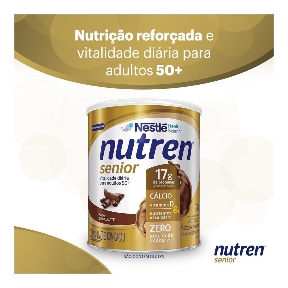 O Nutren Senior é um composto lácteo em pó formulado para adultos, geralmente utilizado para complementar a alimentação de uma forma geral ou auxiliar no tratamento de quadros clínicos como caquexia (perda de tecido adiposo e músculo ósseo), desnutrição e osteoporose (ossos frágeis e com maior risco de fraturas). O leite em pó é uma versão desidratada do leite da vaca, mas que mantém os seus nutrientes para o nosso consumo. Já um composto lácteo, por sua vez, são produtos que possuem acréscimo de outros ingredientes na sua formulação, além do derivado lácteo. O Nutren Senior é indicado para homens e mulheres com idade superior a 50 anos, que necessitam de uma dieta rica e equilibrada para suprir as necessidades vitamínicas, proteicas e calóricas, principalmente em situações metabólicas especiais e específicas. Sua fórmula é hipercalórica e hiperproteica, fornecendo 1,5kcal por 1mL, além de conter 26 vitaminas e minerais, que auxiliam no fortalecimento do metabolismo e do sistema imunológico, e na formação das células vermelhas (células responsáveis pelo transporte do oxigênio dos pulmões para os tecidos e pela retirada do gás carbônico para ser eliminado pelos pulmões). Além disso, previne riscos de quedas e fraturas, pois age na manutenção de ossos, e contribui para a manutenção dos músculos, melhorando a resistência e massa muscular.