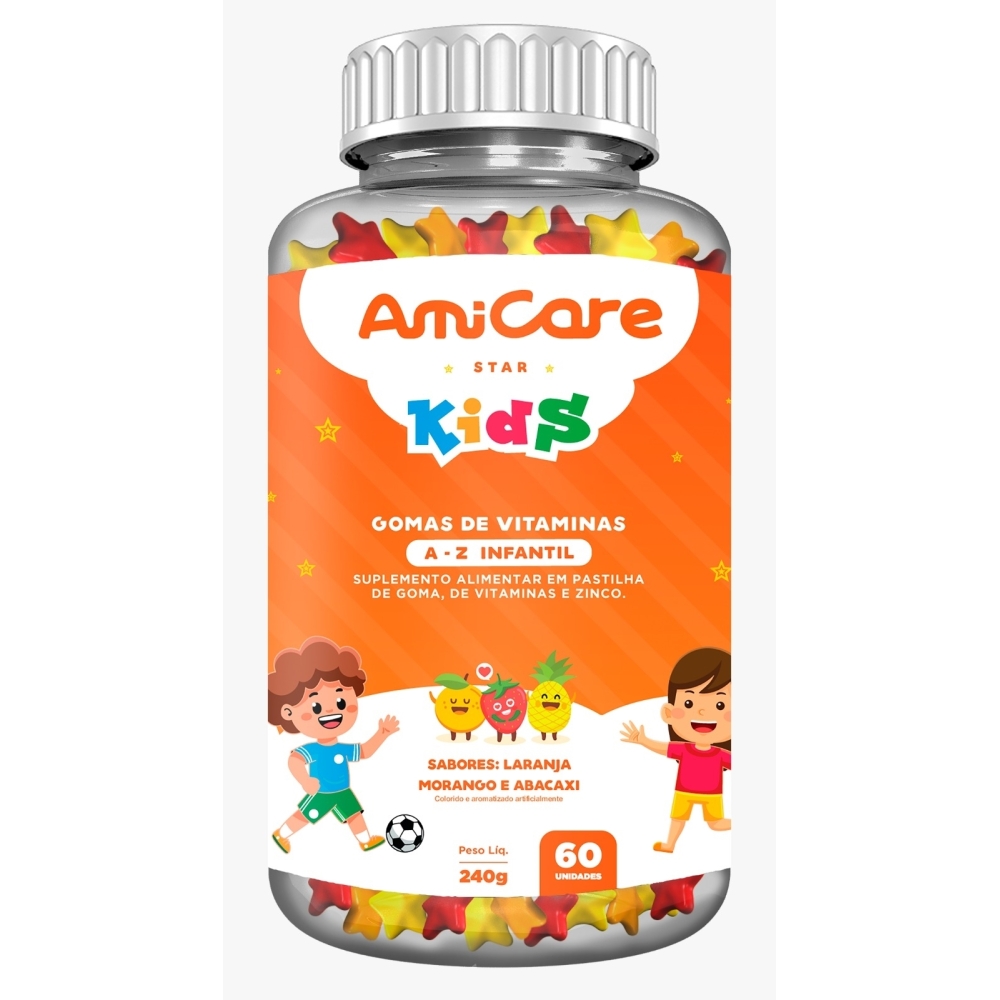 Cuidar da saúde dos pequenos nunca foi tão fácil e divertido! Apresentamos o AmiCare Star Kids, o suplemento vitamínico em forma de gomas em formato de estrelas, disponível nos deliciosos sabores de laranja, morango e abacaxi. Com o AmiCare Star Kids, você pode garantir que seus filhos recebam as vitaminas essenciais de uma maneira que eles vão adorar. Nossa fórmula foi cuidadosamente elaborada para oferecer uma combinação equilibrada de nutrientes vitais para o crescimento e desenvolvimento saudável das crianças. Cada mordida dessas gomas saborosas é uma dose de vitaminas fundamentais, que são essenciais para fortalecer o sistema imunológico, manter ossos e dentes saudáveis, melhorar a saúde da pele e cabelos, e promover a vitalidade geral. Não precisa mais se preocupar com as dificuldades de fazer com que seus filhos tomem vitaminas. Com o AmiCare Star Kids, eles vão querer tomar todos os dias, pois é uma delícia em cada estrela. Cuide da saúde dos seus pequenos de forma gostosa e divertida com AmiCare Star Kids - o suplemento vitamínico que transforma cuidados em diversão!
