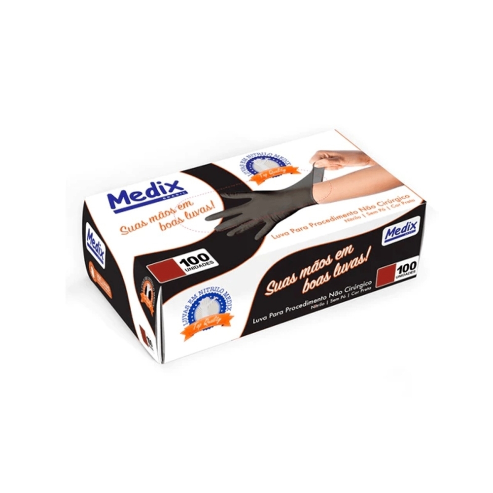 Produzida em nitrilo, a Luva Nitrílica Preta é destinada à segurança e proteção durante procedimentos não cirúrgicos. Ambidestra e com punho de acabamento enrolado, é de fácil colocação e retirada. Benefícios -Possui punho com acabamento enrolado; -Sem pó. Modo de uso -Verifique o tamanho adequado para suas mãos conforme indicação*; -Verifique a integridade da embalagem; -Realize a higiene das mãos, assegure que as mãos estejam limpas e secas para o passo seguinte; -Retire a luva da embalagem o mais próximo possível do momento do uso; -Calce a luva cuidadosamente, sem anéis, pulseiras, relógios ou outros acessórios que possam perfurar o produto; -Após o uso, retire a luva e descarte-a imediatamente em local adequado; -Realize a higiene das mãos; Não reutilizar ou esterilizar após o uso. PROIBIDO REPROCESSAR.