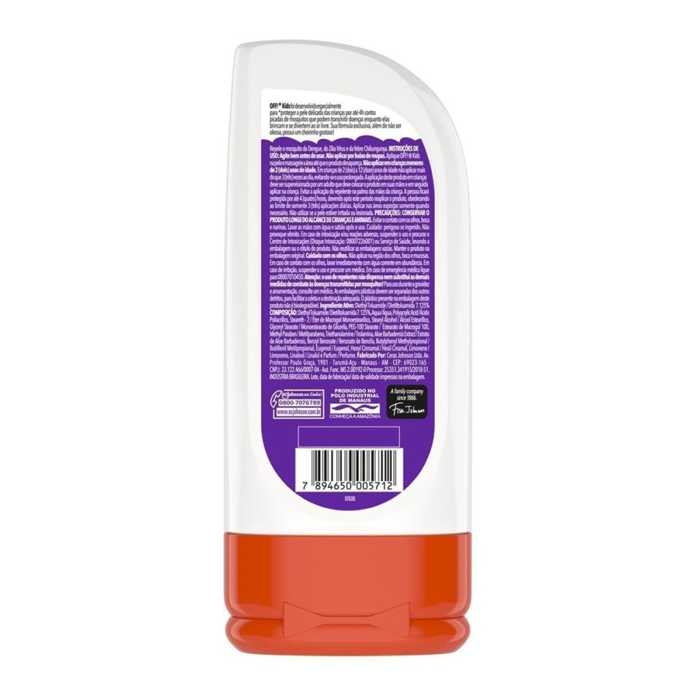 O que é o Repelente Loção Off Kids? Off Kids foi desenvolvido especialmente para proteger a pele delicada das crianças. É um repelente em loção, com textura não oleosa e um cheirinho suave e agradável. Garante proteção contra Zika vírus, Dengue, Chikungunya e Febre Amarela. Protege por até 4 horas. Dermatologicamente testado. Para que serve o Repelente Loção Off Kids? Seu uso é indicado para crianças acima de 2 anos. Sua fórmula possui a tecnologia DEET, um ativo potente que protege a pele das alergias e coceiras dos mosquitos. Benefícios Desenvolvido especialmente para a pele delicada das crianças. Não oleoso. Garante proteção contra mosquitos, inclusive contra o Aedes aegypti, mosquito transmissor de Zika vírus, Dengue, Chikungunya e Febre Amarela. Protege por até 4 horas. Dermatologicamente testado.