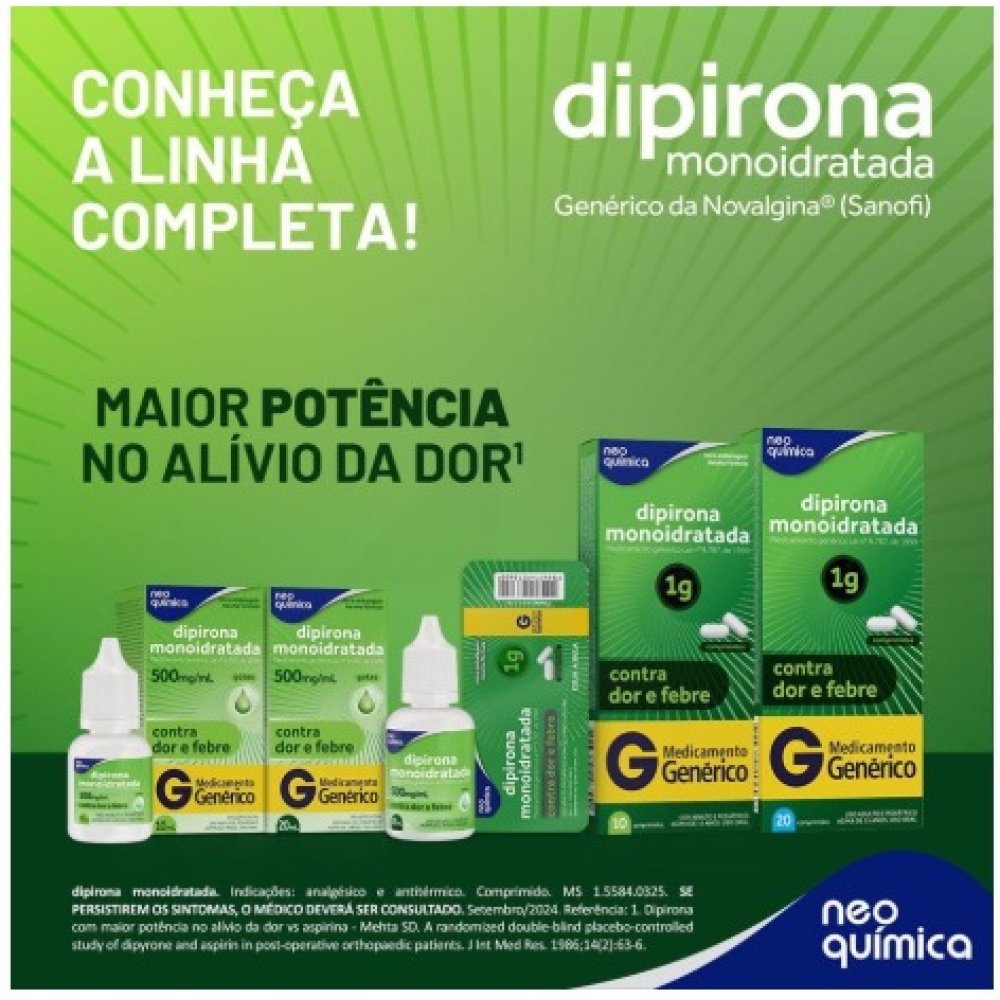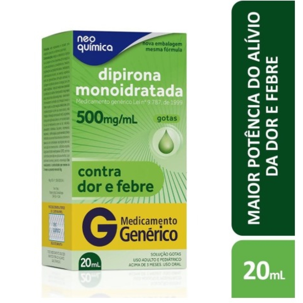 Dipirona sodica gotas 500mg/ml 20ml neo quimica É UM MEDICAMENTO. SEU USO PODE TRAZER RISCOS. PROCURE O MÉDICO E O FARMACÊUTICO. LEIA A BULA. SE PERSISTIREM OS SINTOMAS, O MÉDICO DEVERÁ SER CONSULTADO.