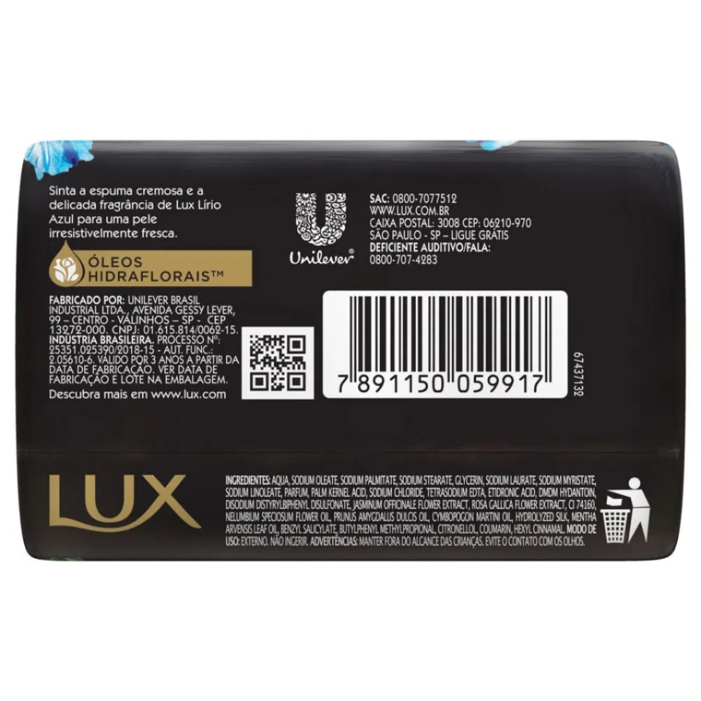 Sabonete em barra Lux Botanicals Lírio Azul contém glicerina.