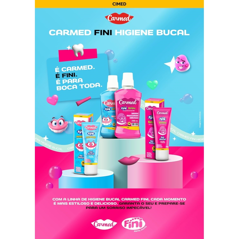 O Gel Dental Carmed Fini Dentaduras proporciona um hálito fresco e dentes mais saudáveis. Com sabor suave e agradável, é ideal para quem busca uma limpeza eficaz e proteção contra as cáries. A embalagem prática de 90g oferece o equilíbrio perfeito entre qualidade e durabilidade para o cuidado diário bucal. Experimente a sensação do Carmed Fini Beijos! O gel dental combina cuidado bucal com a alegria de um sabor inspirado nos famosos doces Fini. Esta pasta de dente promove a limpeza eficiente e proteção dos dentes de forma suave, além de ser enriquecida com ingredientes que ajudam a prevenir cáries.