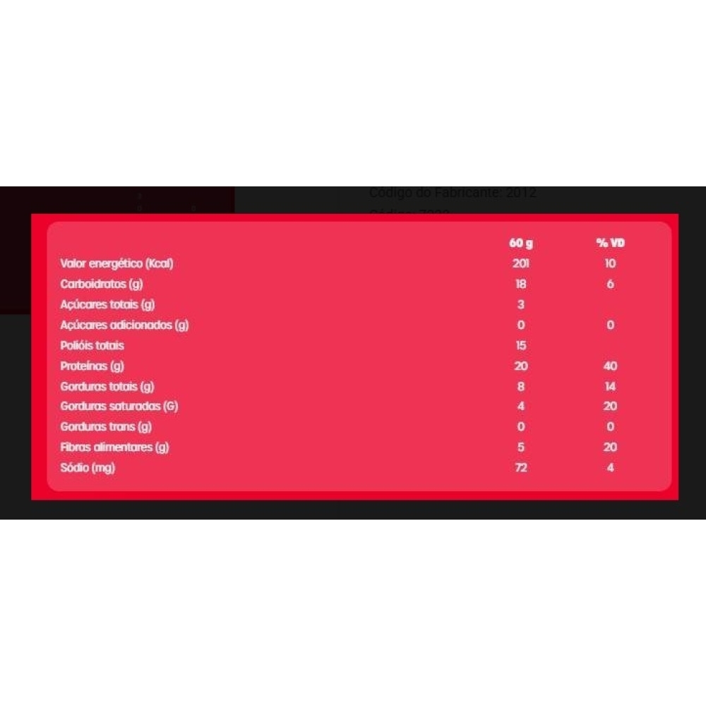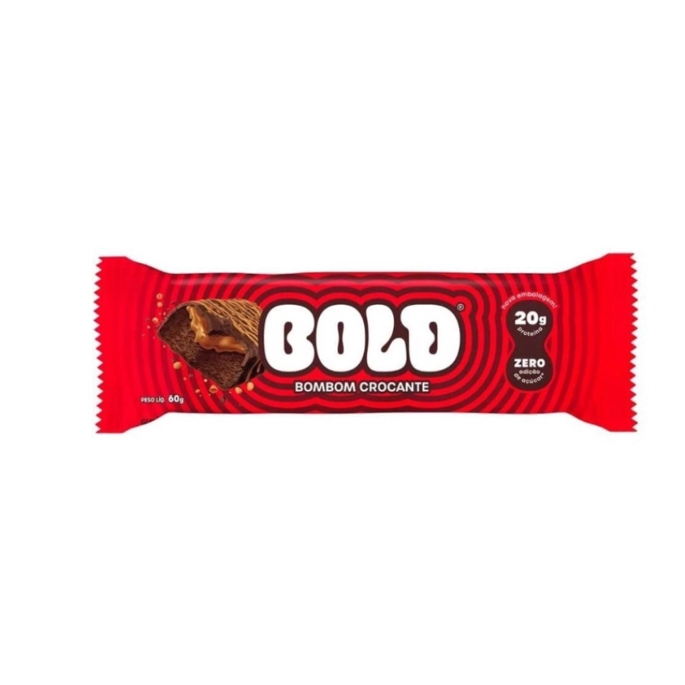 Bold Bar (60g) - Sabor: Bombom Crocante.Bold Bar (60g) A Bold oferece barrinhas de proteína com um sabor irresistível, ideais para pequenas refeições ao longo do dia e para auxiliar na regulação do apetite. Elas proporcionam níveis sustentados de energia, abastecem o corpo com nutrientes de alta qualidade e promovem o desenvolvimento muscular. Com 20g de proteína, a Bold é uma opção saudável e saborosa, com uma composição balanceada de fibras, gorduras e carboidratos. Perfeita para todos os momentos vai muito bem como aquele lanche feito entre as principais refeições como pré e pós-treino ou, até mesmo como uma sobremesa extremamente saborosa e que não compromete a rotina alimentar. Experimente benefícios: - 20g de proteínas; - Zero adição de açúcares; - 5g de Fibras; - Perfil equilibrado de gorduras e carboidratos; - Baixa quantidade de sódio; - Saborosa, prática e fácil de consumir!