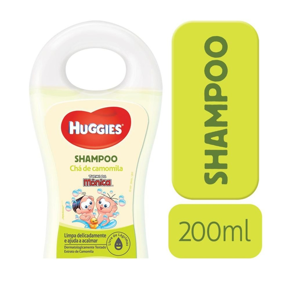 Shampoo infantil Huggies Turma da Monica cha de camomila 200mL