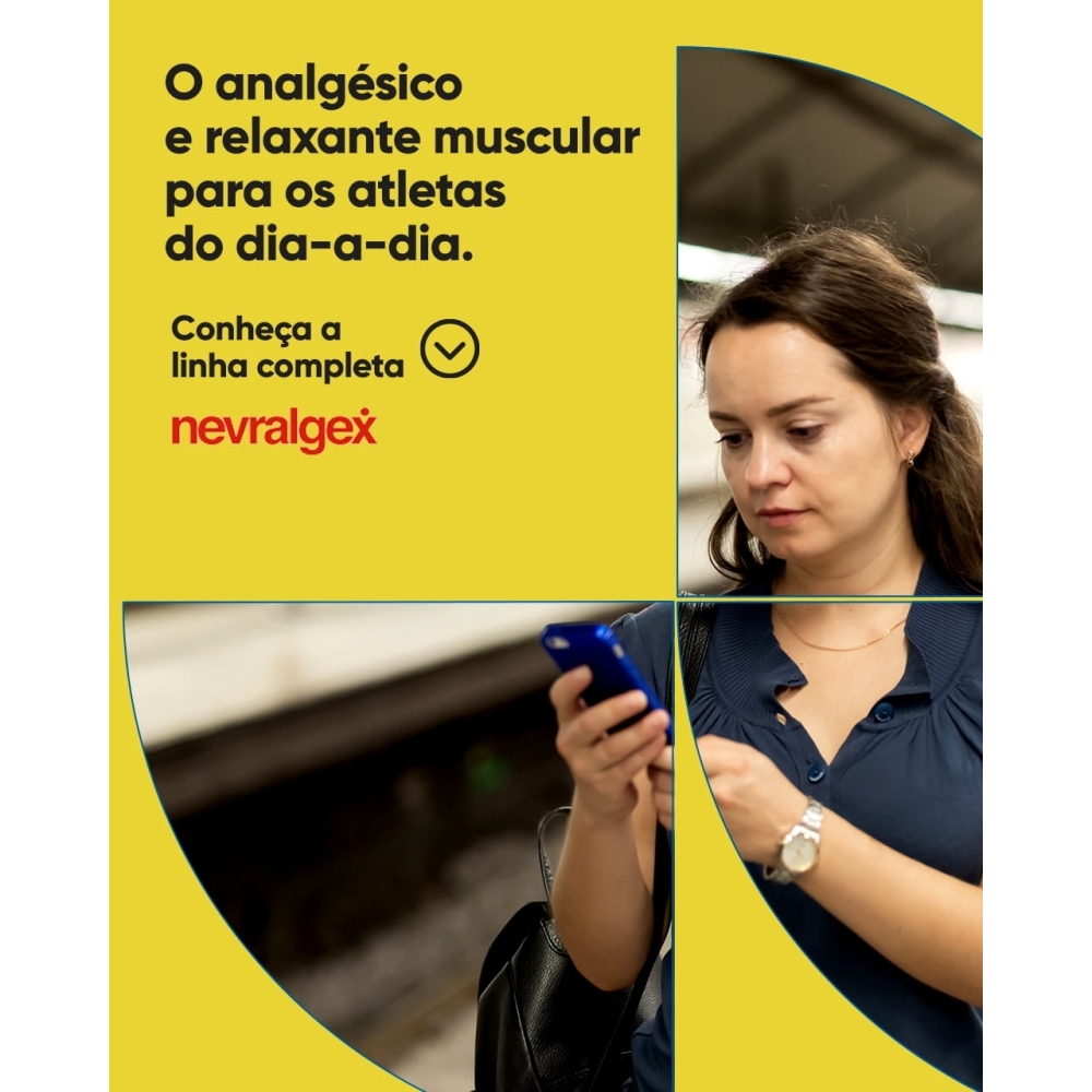 Nevralgex é indicado no alívio da dor associada a contraturas musculares, incluindo dor de cabeça tensional.Nevralgex possui ação analgésica e relaxante muscular. O início da ação ocorre a partir de 30 minutos.