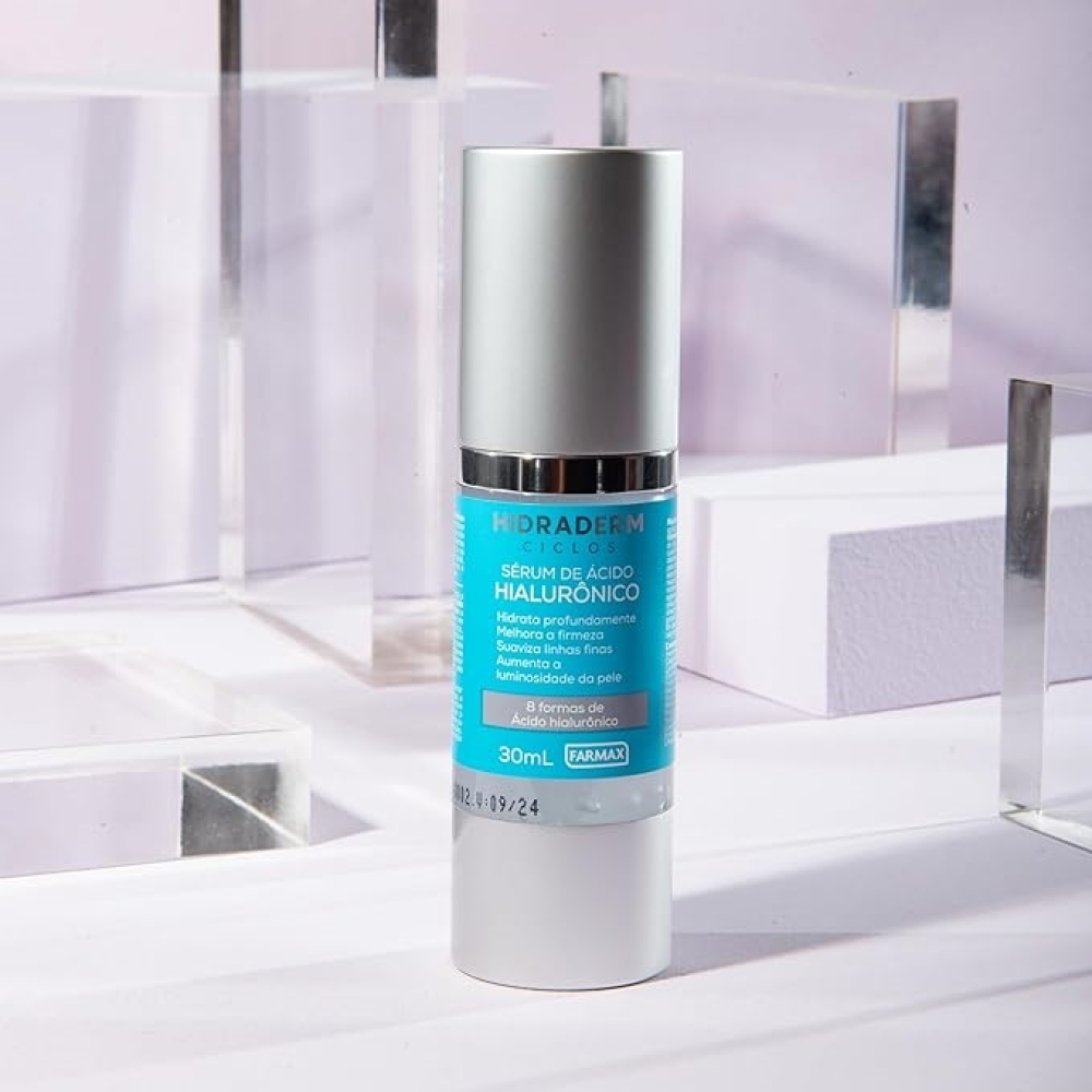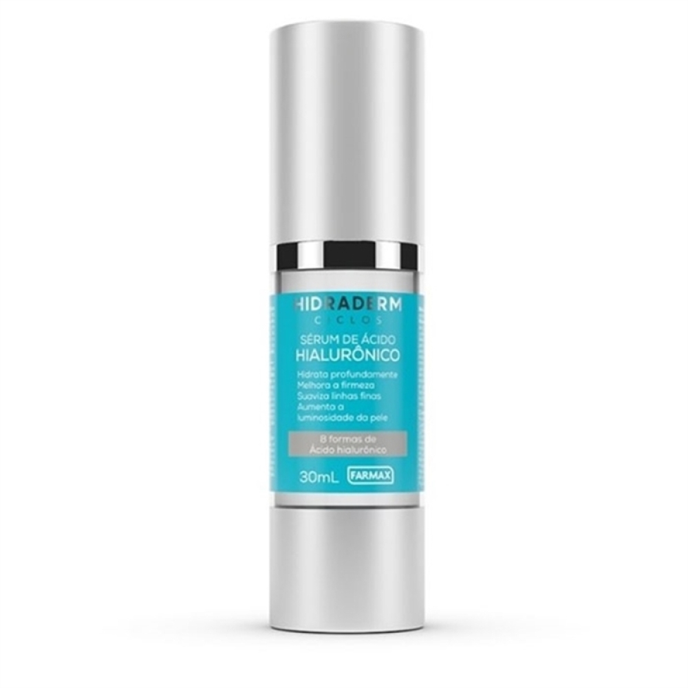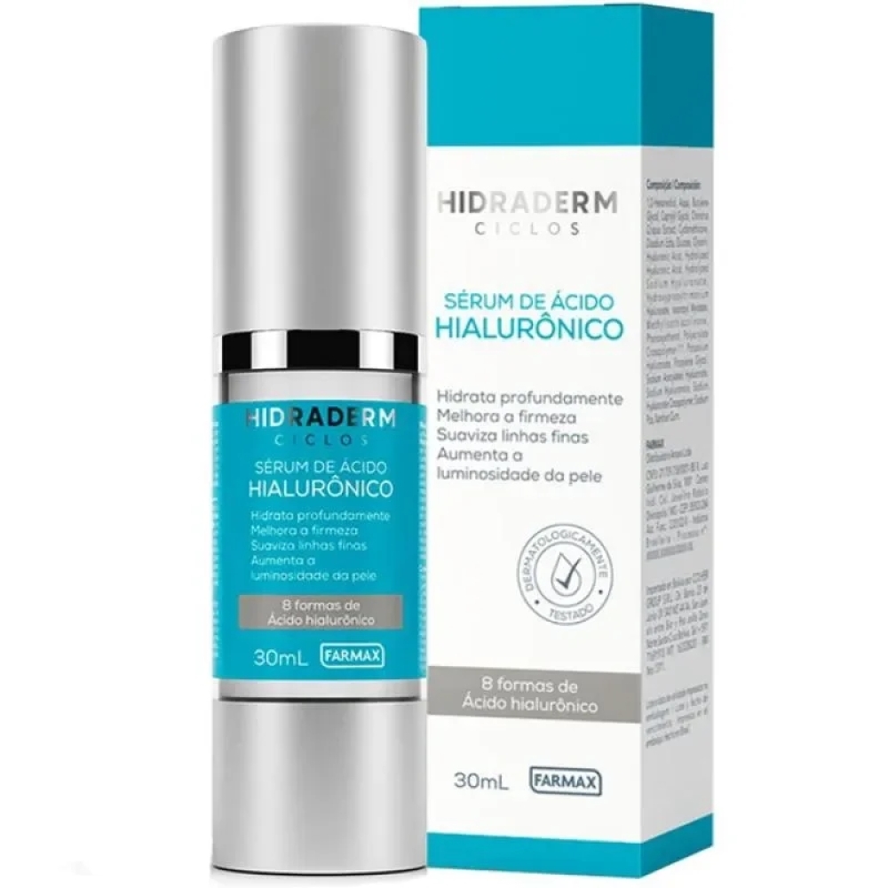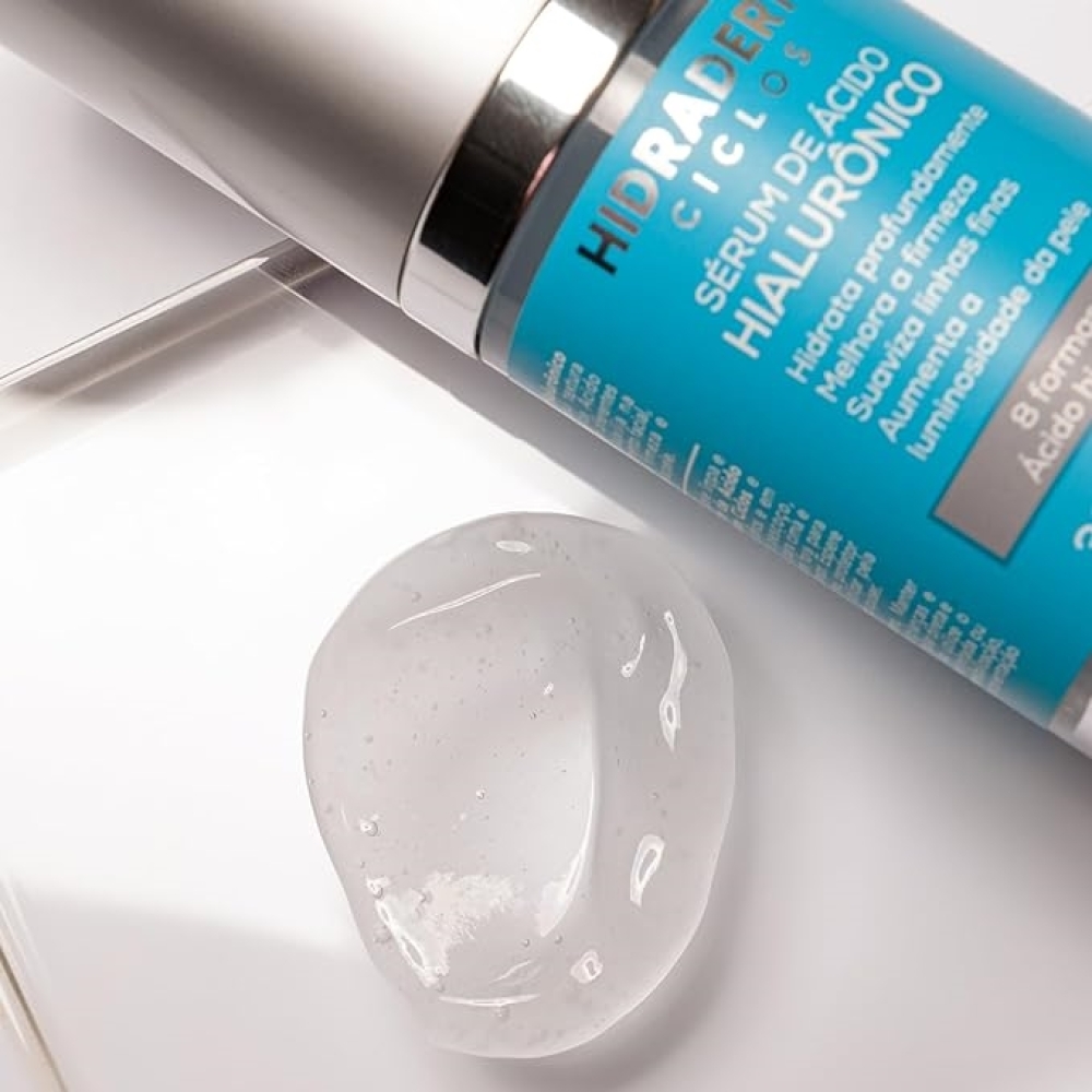 O Sérum de Ácido Hialurônico Hidraderm Ciclos possui textura suave com 8 formas de Ácido Hialurônico.Para que serveEle age em diferentes camadas da pele e auxilia na prevenção do envelhecimento facial, além de melhorar a firmeza e também a luminosidade da pele.Modo de usarCom a pele limpa e seca, aplique o Sérum de Ácido Hialurônico Hidraderm Ciclos e espalhe ao redor dos olhos e em todo o rosto até o pescoço, massageando de baixo para cima e do centro do rosto para fora para potencializar o efeito tensor. Espere secar antes de passar seu protetor solar ou maquiagem. Utilizar pela manhã, à noite ou quando quiser.