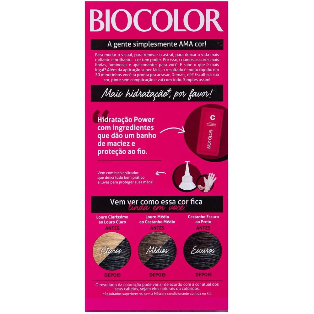 - Com Biocolor Coloração Creme você pode clarear ou realçar a cor dos cabelos, sejam eles naturais ou coloridos: